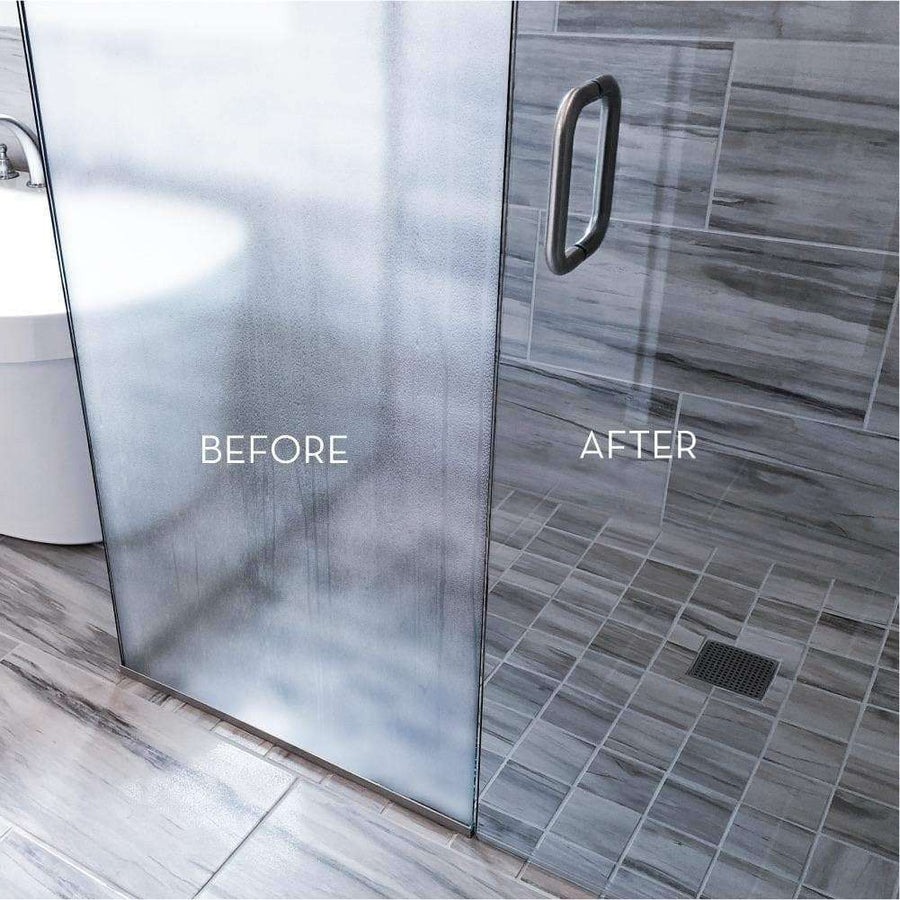 But not all glass is created equal. Shower doors, for instance, often have a coating that can wear down if you use harsh chemicals or abrasive pads.